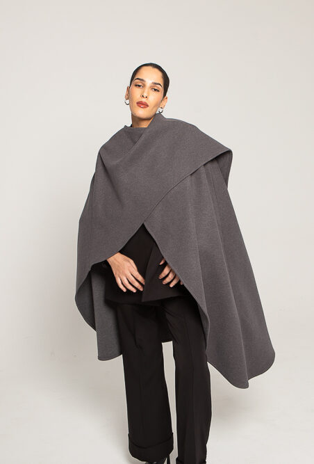 Majestueuse et libre, L’Insoumise réinvente la cape d’hiver avec une allure contemporaine.