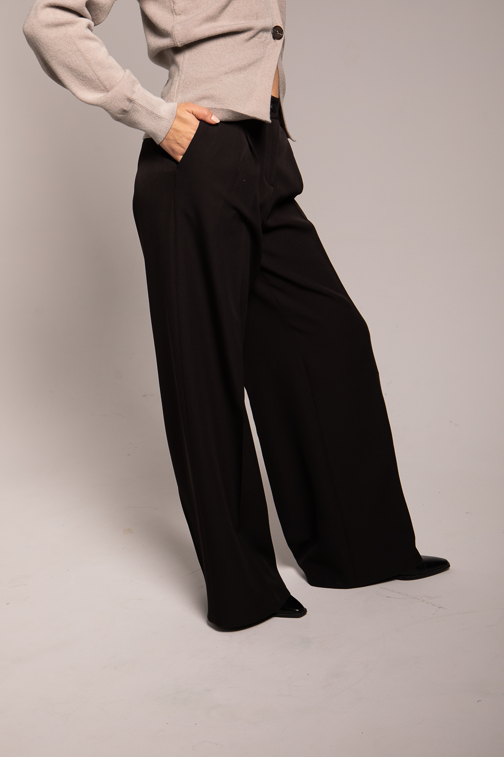 Le Pantalon Noir Signature séduit par sa taille semi-haute et sa coupe large au tombé fluide. Élégant, intemporel et facile à porter, il allonge la silhouette et accompagne toutes les envies — du quotidien au soir.